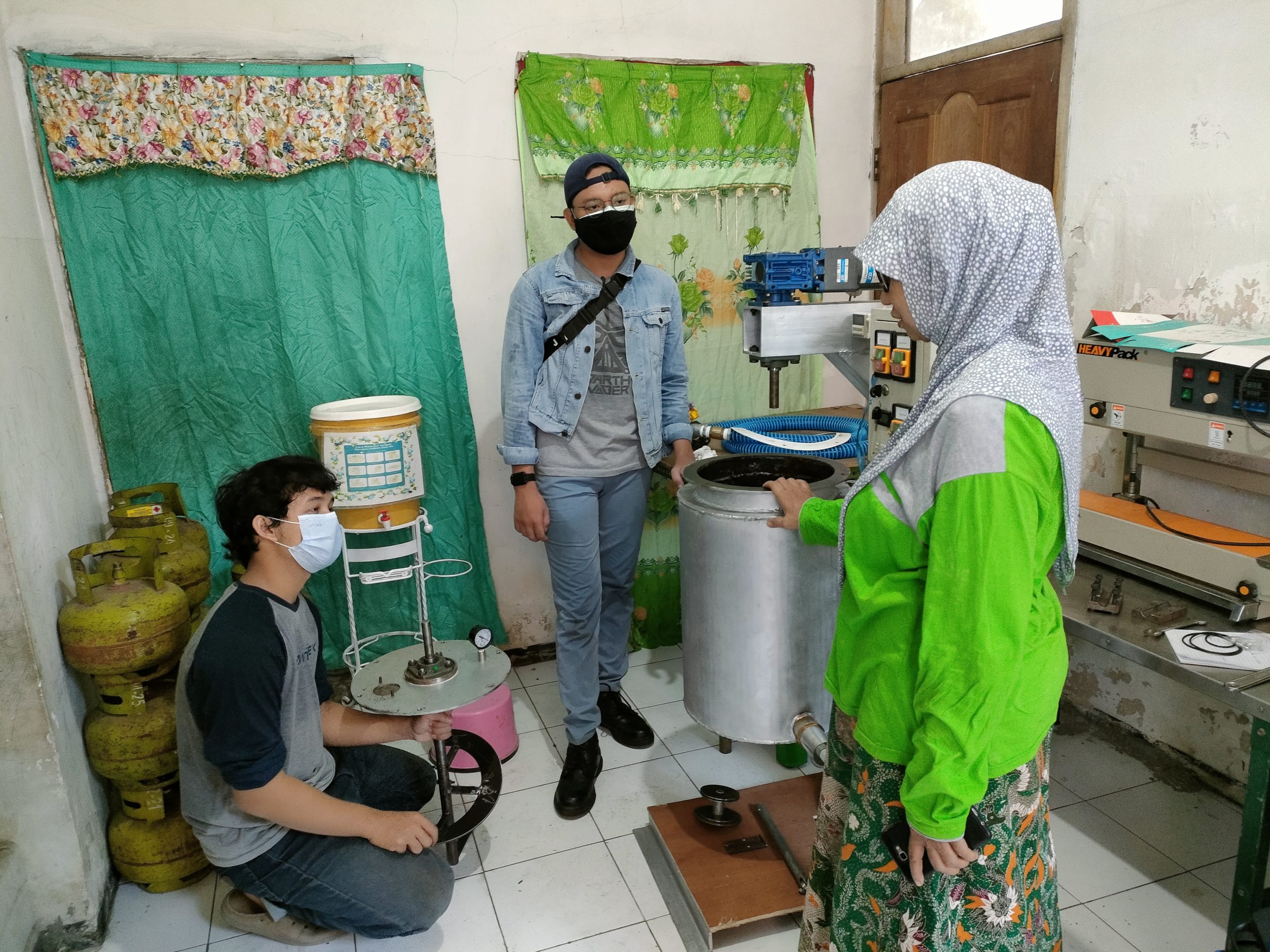 Tim MIRA saat mengunjungi IKM Virgo Barokah Food untuk pemasangan mesin sangrai.
