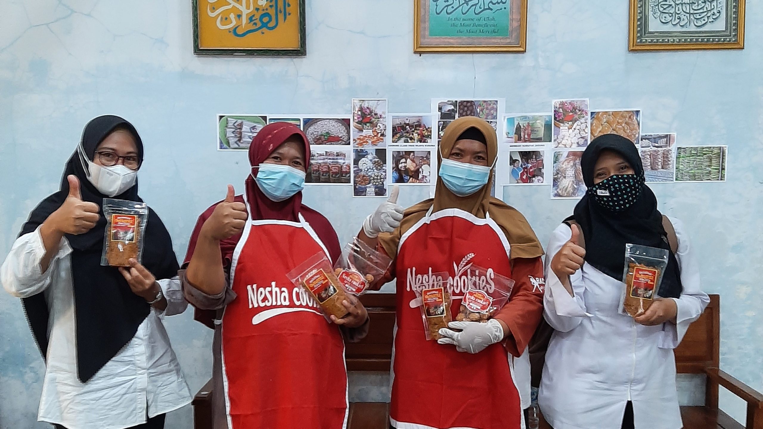Tim KKN Abmas ITS bersama dengan salah satu mitra UMKM, Nesha Cookies.