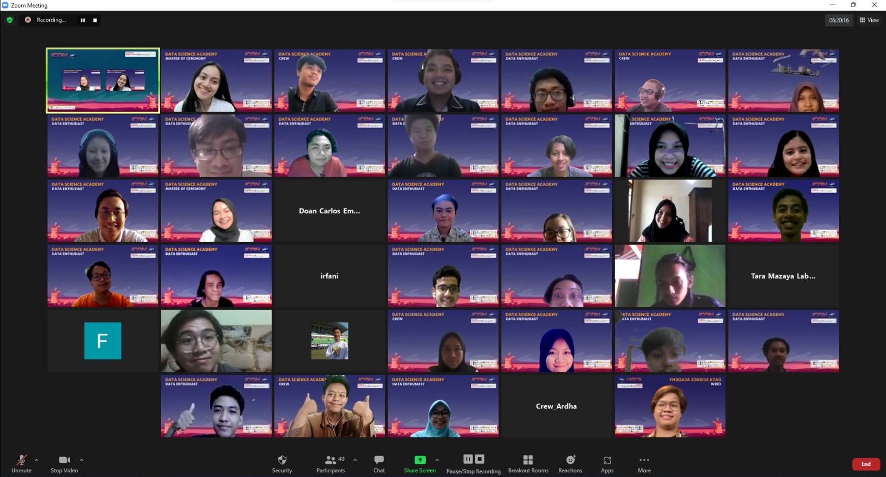 Pelatihan yang berlangsung setiap hari Sabtu dan Minggu tersebut menghadirkan pakar di Komunitas Data Science Indonesia yaitu Fitria Nur Aida dan Radical Rakhman Wahid. Selain dua pemateri tersebut, hadir juga mentor yang akan membantu peserta yang kesulitan memahami materi maupun penugasan.