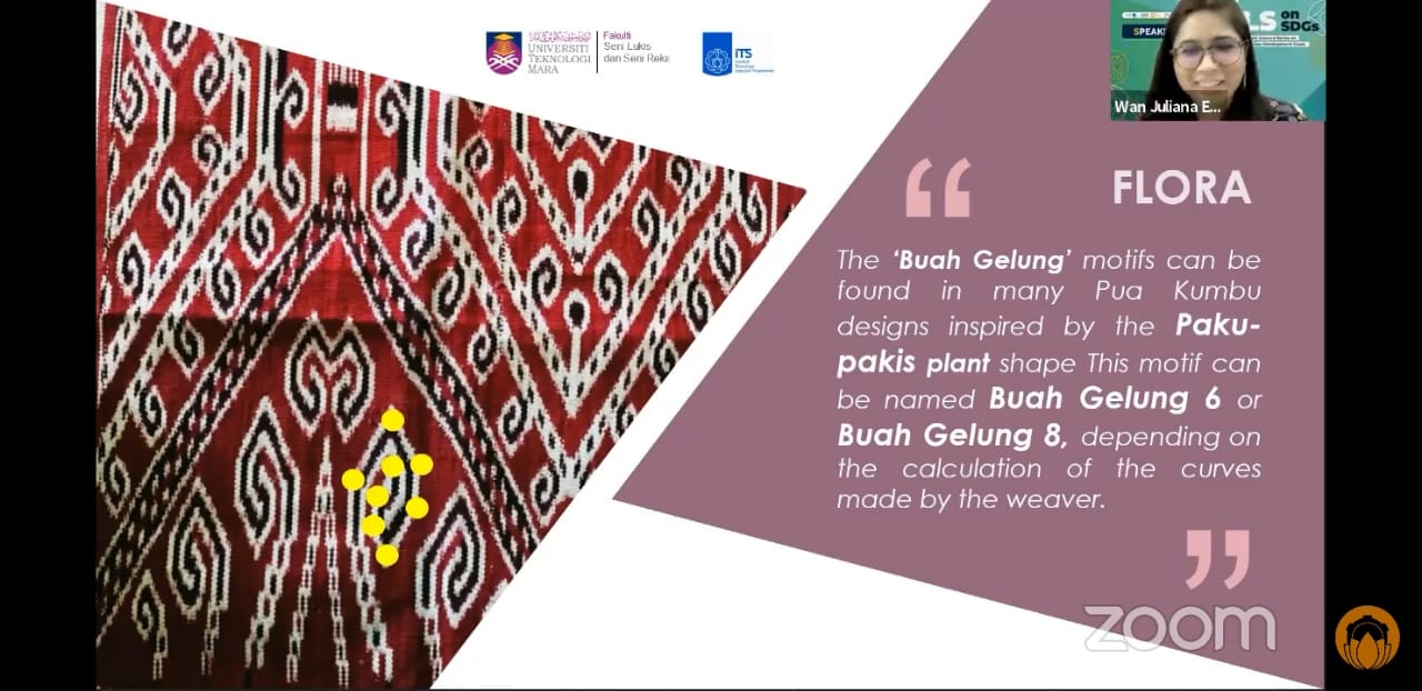 Kampus ITS, ITS News – Suku Iban terkenal dengan kain tenunnya, yaitu Pua Kumbu. Kain tenun ini memiliki beragam motif yang indah dan memiliki keterkaitan erat dengan sejarah, adat, dan kepercayaan Suku Iban. Perkenalan lebih lanjut dengan kain yang dianggap suci dan sarat akan makna ini diangkat dalam Guest Lecture Series on Sustainable Development Goals (GLS on SDGs) Institut Teknologi Sepuluh Nopember (ITS), Selasa (5/10).