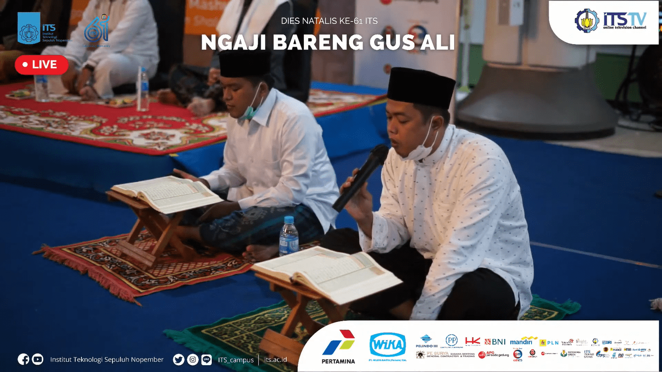 Kampus ITS, ITS News – Rangkaian kegiatan Dies Natalis Institut Teknologi Sepuluh Nopember (ITS) ke-61 tahun ditutup dengan pengajian umum bertajuk Ngaji Bareng Gus Ali. Melalui kajian yang digelar di Masjid Manarul Ilmi ITS dan disiarkan secara langsung melalui Youtube ini, disampaikan konsep meraih kebahagiaan dalam hidup.