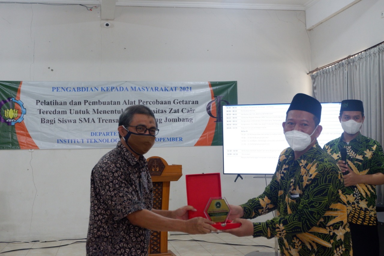 Sesi Penyerahan Cinderamata dari Perwakilan ITS kepada SMA Trensains Tebuireng Jombang pada Selasa (26/10).