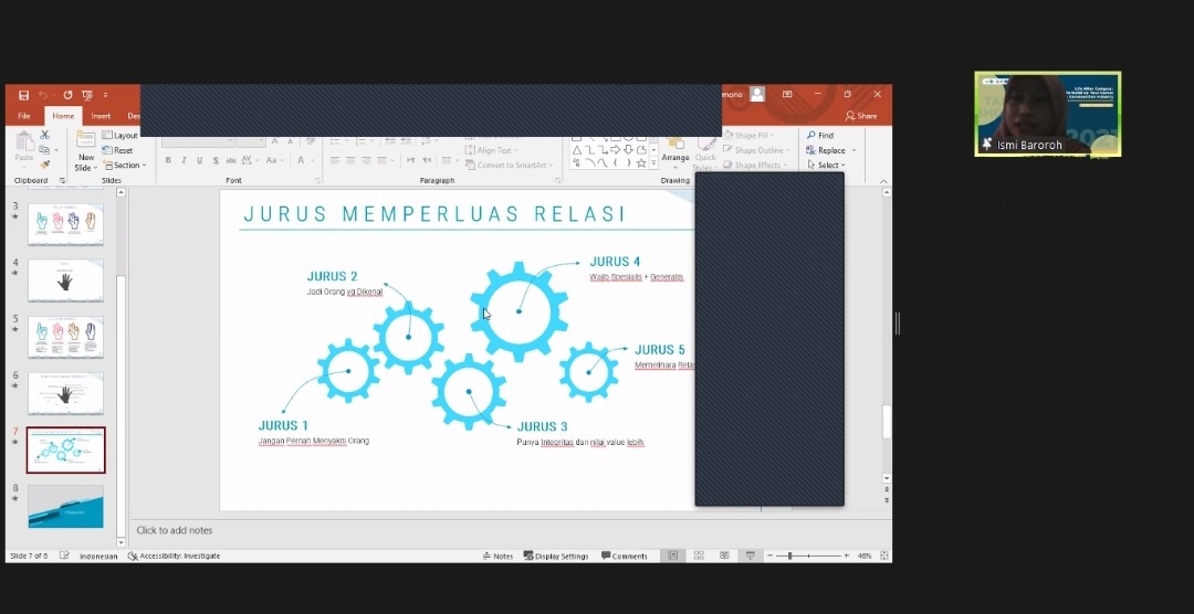 Sepakat dengan Dani, alumnus DTIS lainnya, Ismi Baroroh SST menyatakan jika memelihara relasi adalah hal yang penting dilakukan. Dengan menjaga relasi, kesempatan yang datang kepada lulusan ITS akan semakin bervariasi. “Sehingga pilihan pengembangan karier tidak sebatas di tempat yang sama,” imbuhnya.
