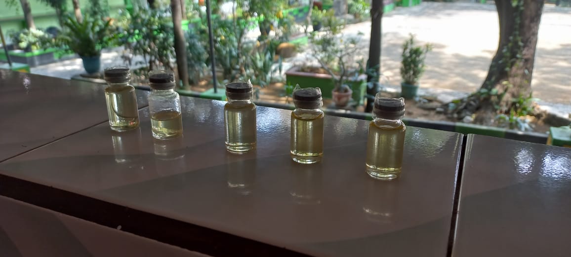 Sebelum diadakannya pelatihan, Tim Abmas ITS ini terlebih dahulu mengambil dan menguji sampel tanaman kayu putih di Laboratorium Departemen Kimia ITS. Hasil sampel pun didapatkan dengan melalui destilasi minyak kayu putih. “Setelah itu, kami pun berangkat ke Desa Dawarblandong untuk mengadakan pelatihan,” ungkap Alvida, sapaan akrabnya.