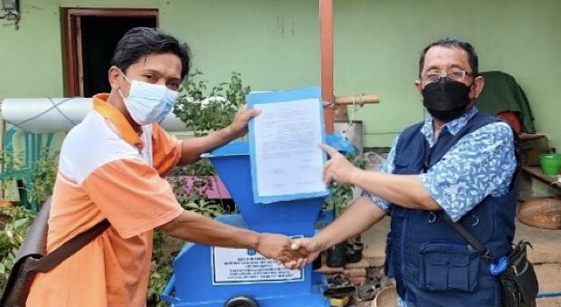 Dr Ir Eko Nurmianto MEngSc saat menyerahkan mesin pencacah porang kepada perwakilan mitra binaan Desa Blongko.