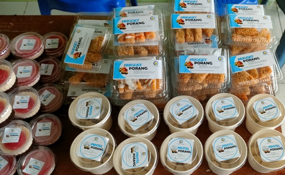 Tak hanya itu, tim Abmas ini juga mengadakan pelatihan pengolahan aneka makanan berbasis porang. Umbi tersebut berhasil diolah oleh masyarakat Desa Blongko menjadi bakso, jeli, mi, dawet, hingga naget porang. Selain produk olahan yang dipasarkan ke masyarakat, umbi porang disuplai ke pabrik porang terbesar di Nganjuk untuk diproses menjadi keripik (chips) serta tepung porang dan diekspor.