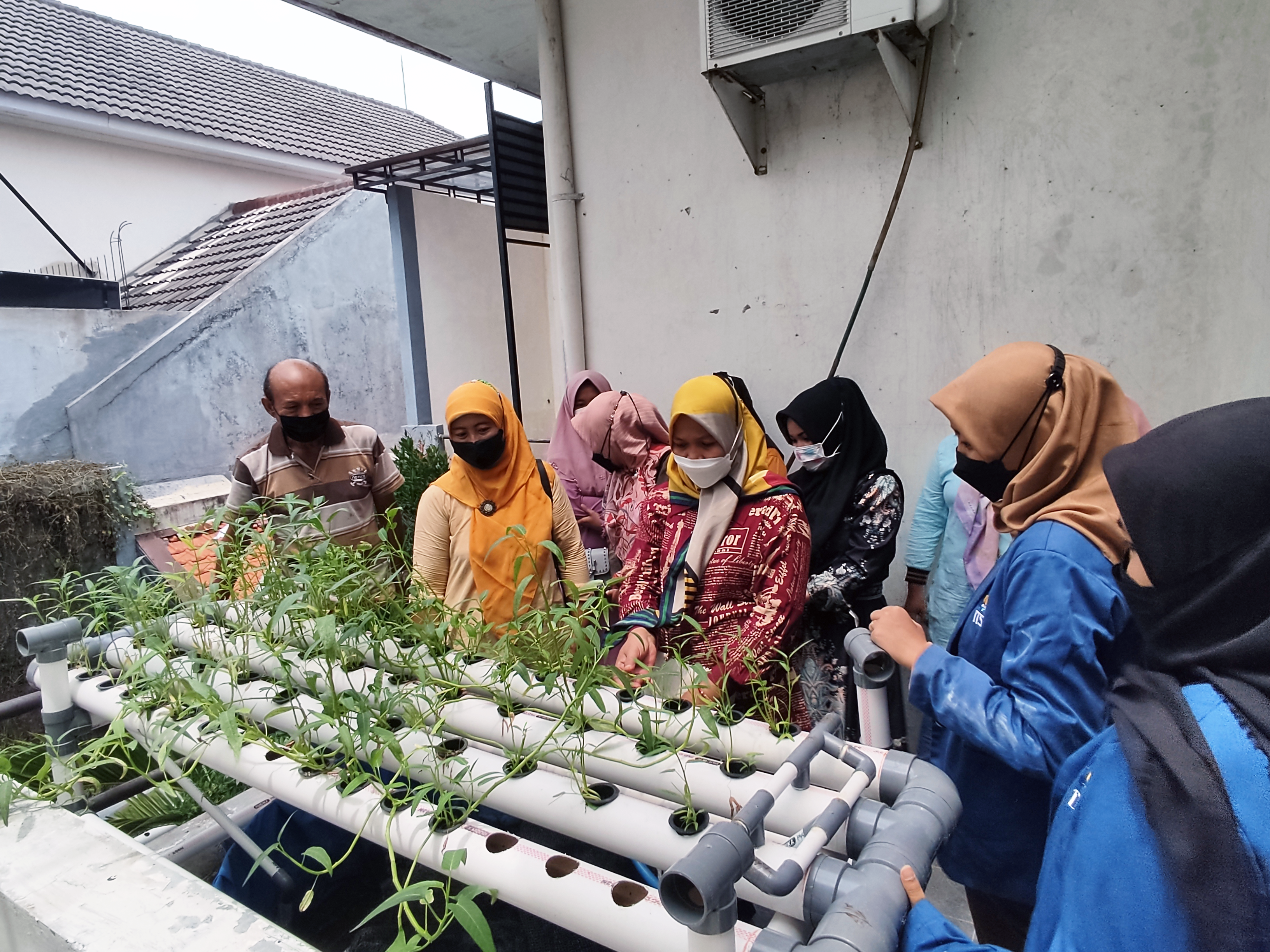 Mitra kader Pemberdayaan Kesejahteraan Keluarga (PKK) RW 008 Keputih melihat dan menanyakan secara langsung perihal seputar akuaponik