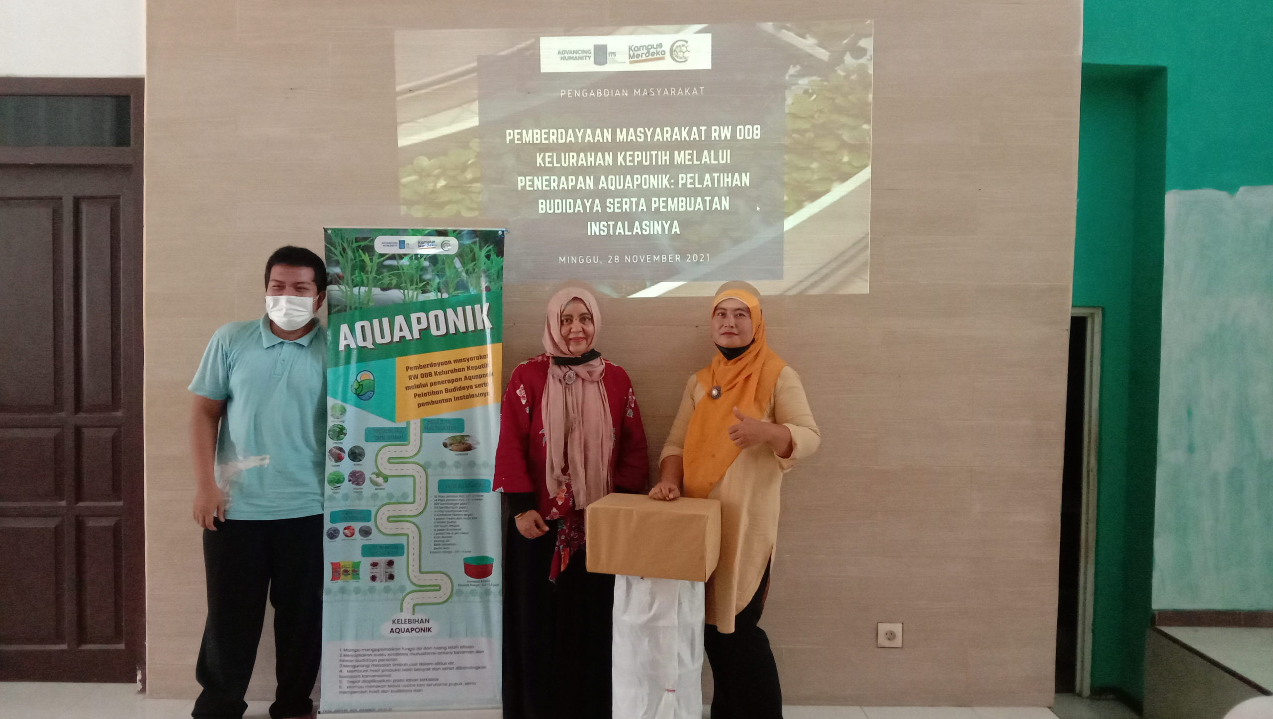 Kegiatan yang telah dipersiapkan sejak Agustus ini tidak hanya memberikan wawasan kepada warga tentang pengayaan ilmu budidaya akuaponik saja, namun warga juga dibekali dengan ilmu pemasaran. Dengan tujuan agar hasil budidaya akuaponik tidak hanya menjadi konsumsi pribadi, namun juga dapat dijual ke pasaran, sehingga diharapkan dapat membantu menaikkan perekonomian warga RW 008.