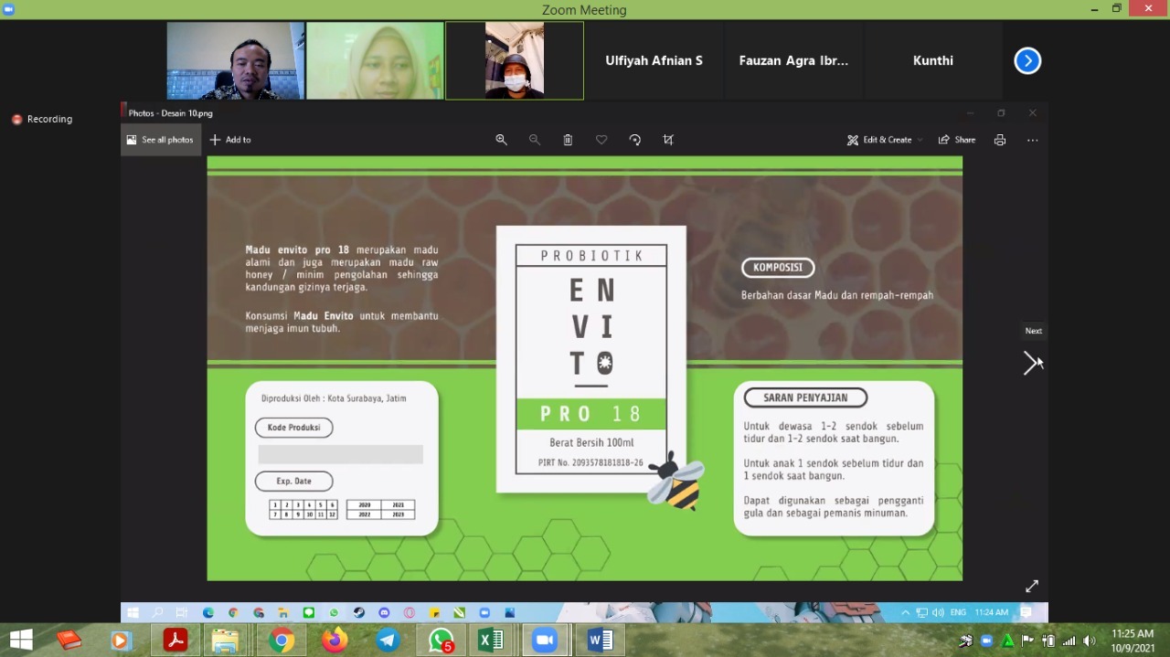 Tim KKN Abmas ITS memaparkan desain kemasan yang akan digunakan oleh mitra
