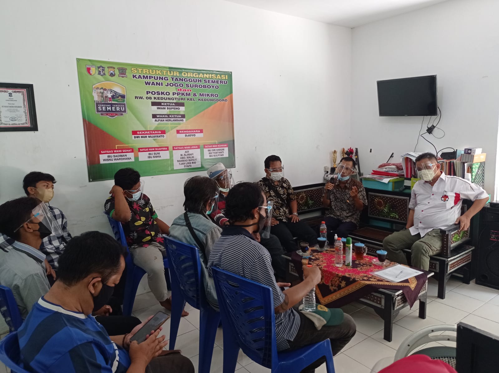 Acara dibuka dengan sambutan oleh ketua RW 8 Kedungturi, Imam Supeno dan dilanjutkan sambutan oleh Kepala Laboratorium Pengolahan Mineral dan Material Teknik Material ITS, Sungging Pintowantoro ST MT PhD Eng. Selanjutnya diisi dengan kegiatan utama yaitu pemberian beberapa alat dan bahan untuk pengolahan sampah organik dengan memanfaatkan larva BSF.
