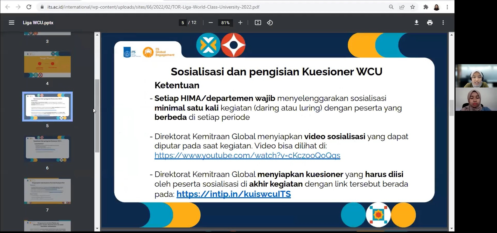 Sosialisasi Liga Internasionalisasi 2022 yang dilakukan DKG ITS kepada perwakilan Himpunan Mahasiswa Departemen di ITS.