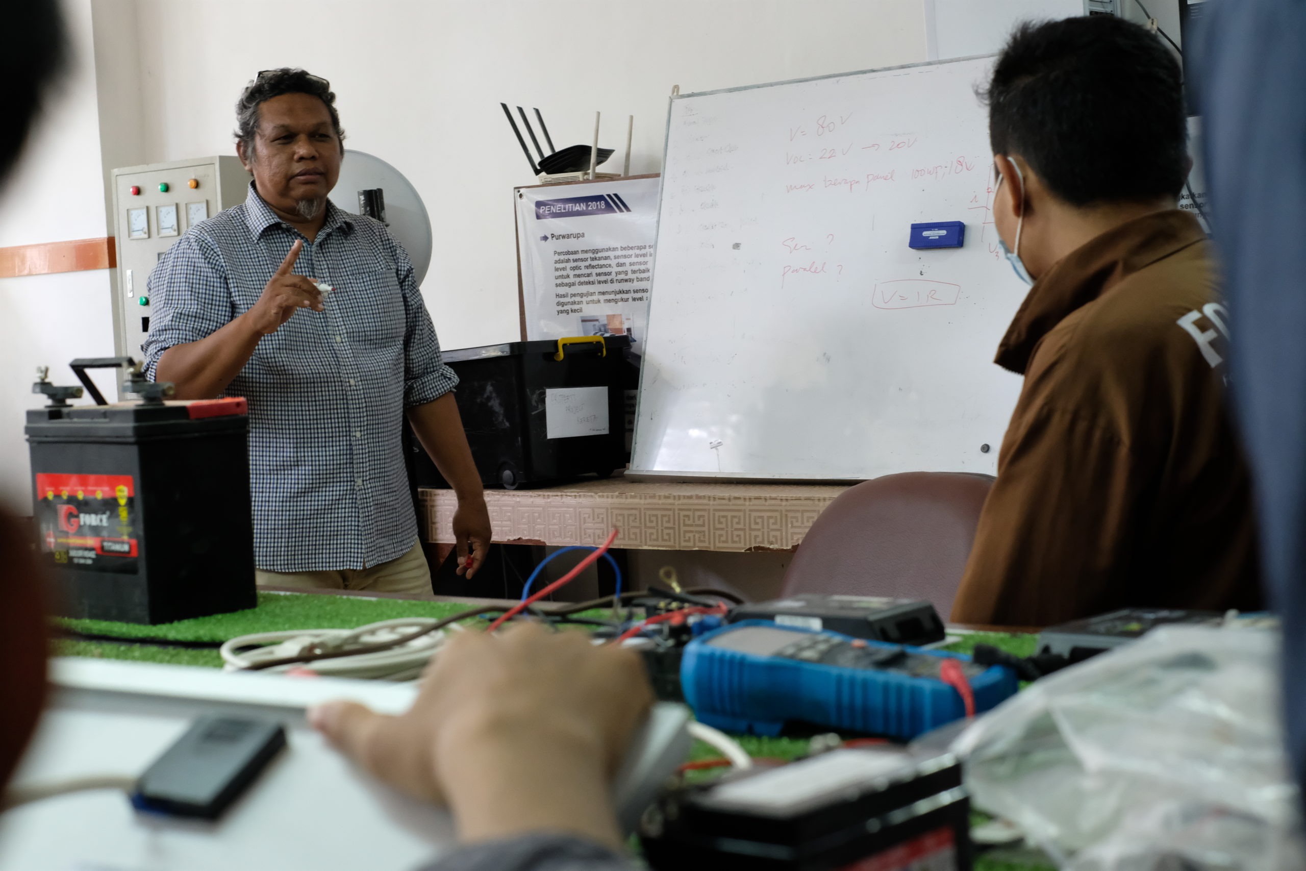 Lebih detail, Yudhi menyebutkan bahwa sinar matahari memiliki partikel bernama foton ketika ia sampai di bumi. Solar panel yang merupakan kumpulan sel surya memiliki rangkaian semikonduktor yang terdiri dari atom-atom. “Ketika foton menghantam atom sel surya tersebut maka energinya mampu memisahkan elektron dari atom tersebut,” paparnya.