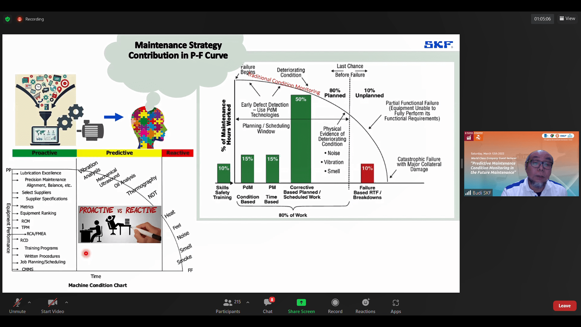 Budi melanjutkan dengan data survei yang menunjukkan bahwa paling sedikit 33 persen dari biaya pemeliharaan terbuang sia-sia karena proses pemeliharaan yang tidak terjadwal dan berlebihan. Sebagai solusi dari konsekuensi strategi pemeliharaan reaktif yang berat, muncullah konsep pemeliharaan proaktif atau preventif.