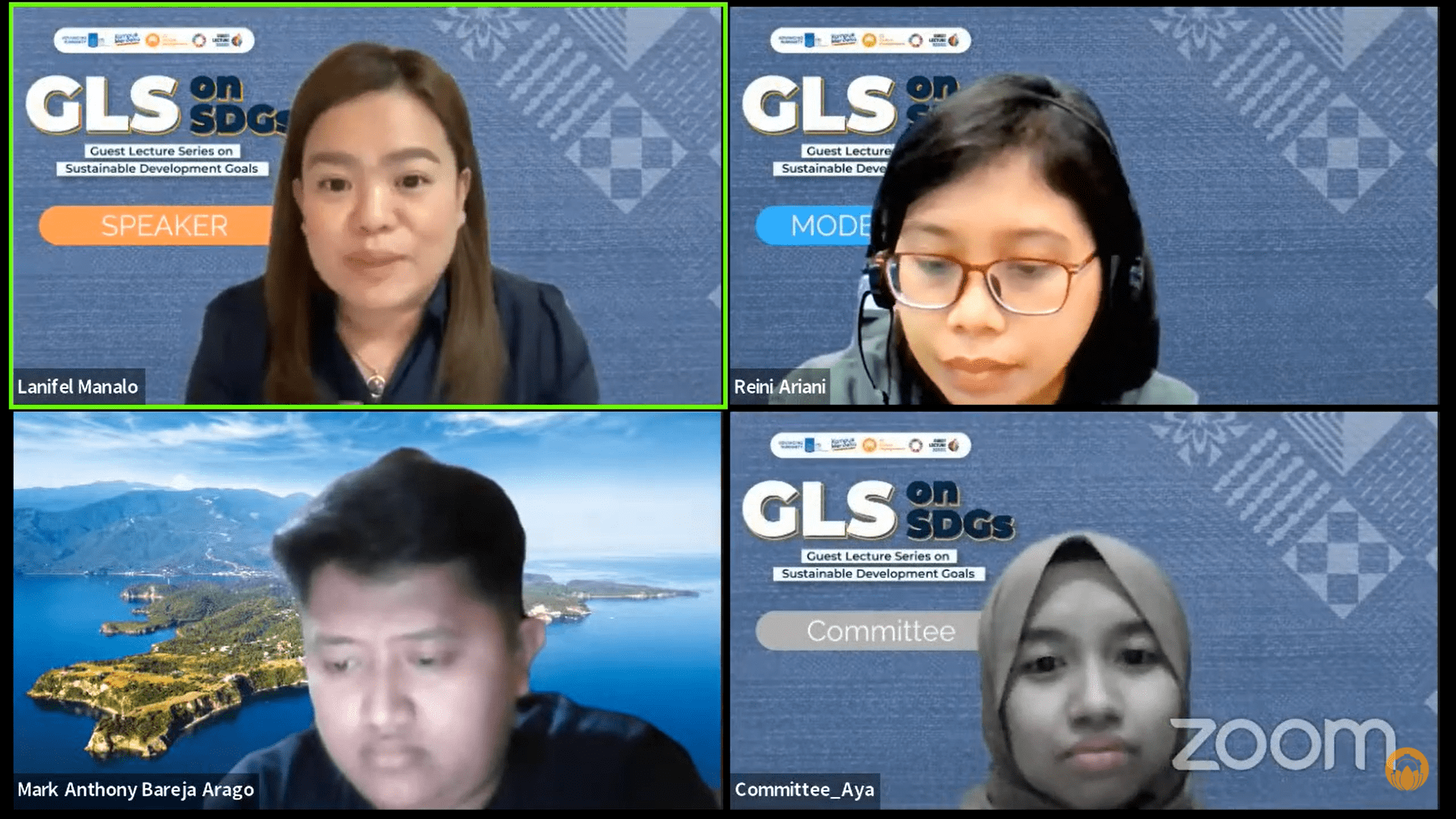 Lanifel Cortez Manalo (kiri atas) berdiskusi dengan peserta Guest Lecture Series (GSL) terkait usaha Filipina dalam mencapai SDGs