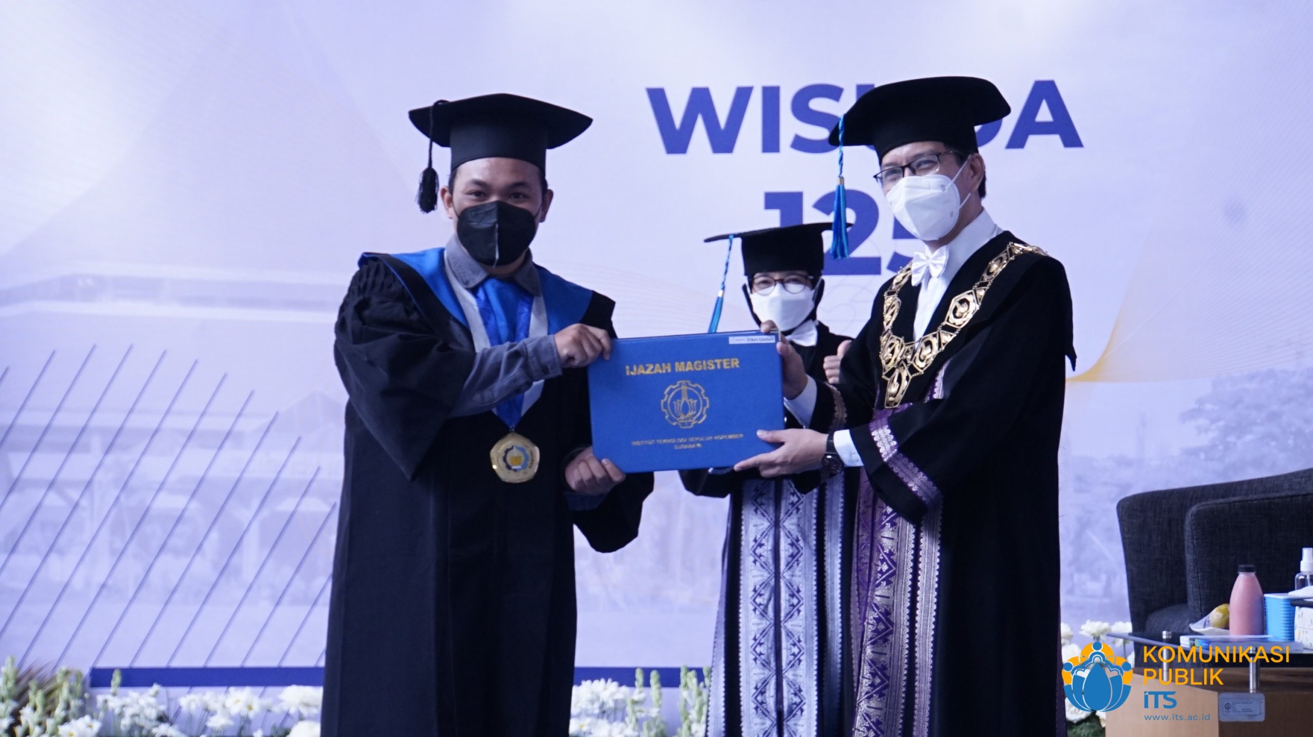 Rektor ITS dan Dekan FTSPK bersama salah satu wisudawan FTSPK program magister