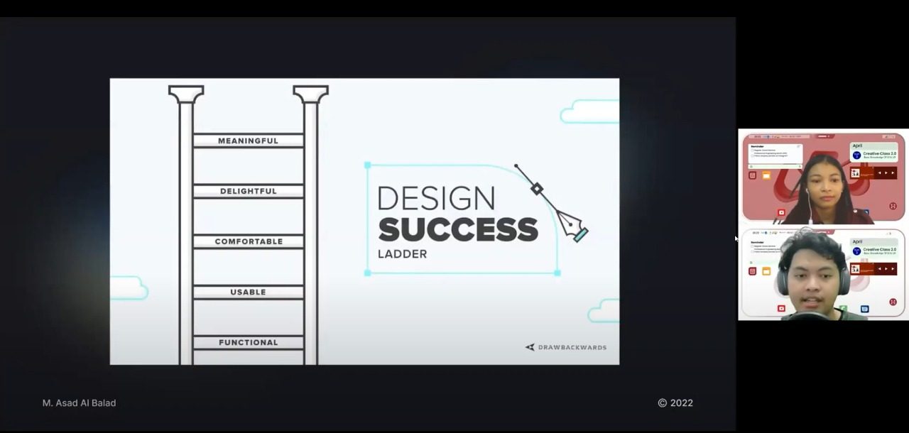 Dalam Creative Class bertajuk Basic Knowledge of UI & UX, Asad menjelaskan bahwa produk dikatakan berhasil apabila memenuhi lima tingkatan yang disebut sebagai design success ladder. Lima tingkatan tersebut adalah fungsional, dapat digunakan, nyaman, menyenangkan, dan bermakna.