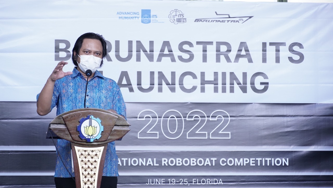 Dosen pembimbing Tim Barunastra ITS Dr Rudy Dikairono ST MT memberikan sambutannya dalam acara peluncuran kapal Nala Theseus