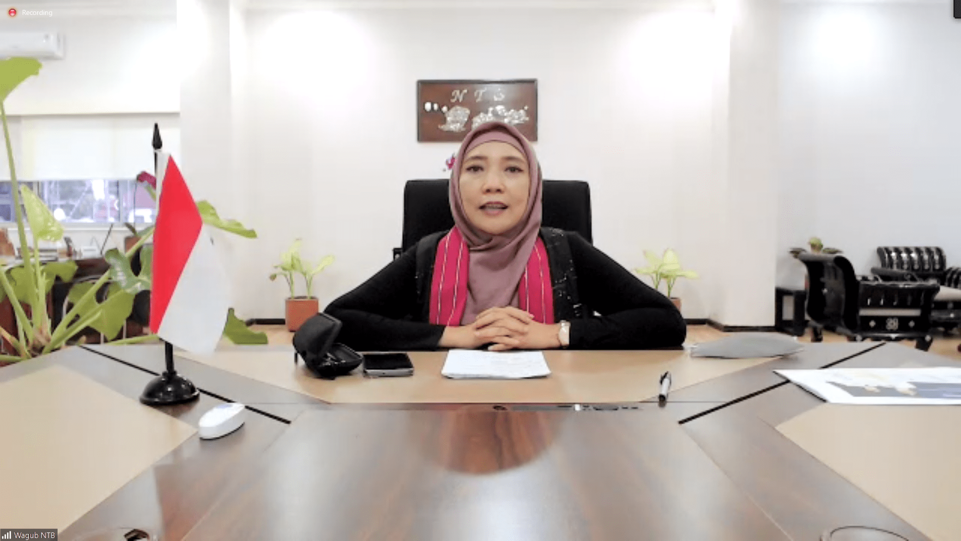 Wakil Gubernur Nusa Tenggara Barat (NTB), Dr Ir Hj Sitti Rohmi Djalilah MPd saat memberikan sambutan pembuka dalam webinar bertajuk Sirkuit Mandalika: Apa yang Membuat Konstruksi Jalannya Istimewa? oleh Departemen Teknik Infrastruktur Sipil ITS.