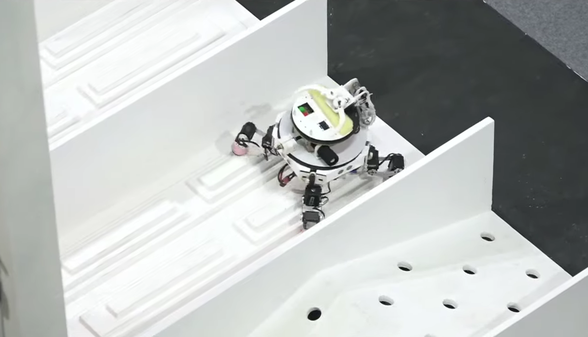 Robot dari ITS milik Tim Abinara-1 saat melewati tantangan jalan undakan berpola piramida