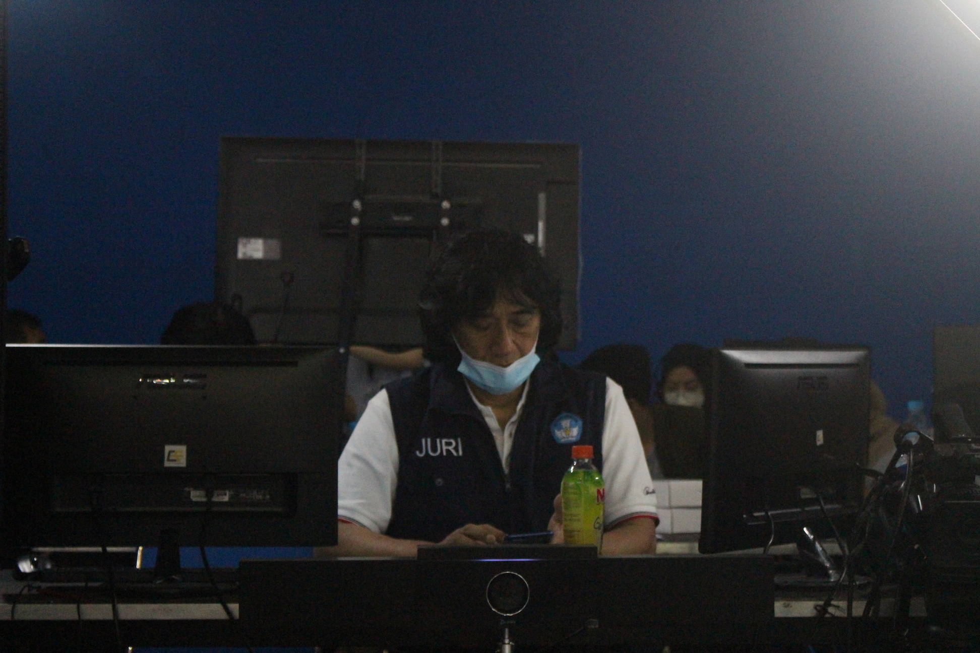 Salah satu juri KRSTI 2022, Prof Dr Eng Drs Benyamin Kusumoputro M Eng sedang menilai penampilan robot para peserta KRSTI