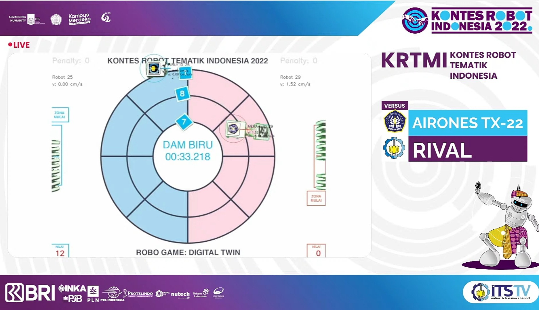 Tim RIVAL dari Institut Teknologi Sepuluh Nopember (ITS) berhasil melakukan DAM dan memenangkan pertandingan putaran pertama di babak penyisihan KRTMI 2022