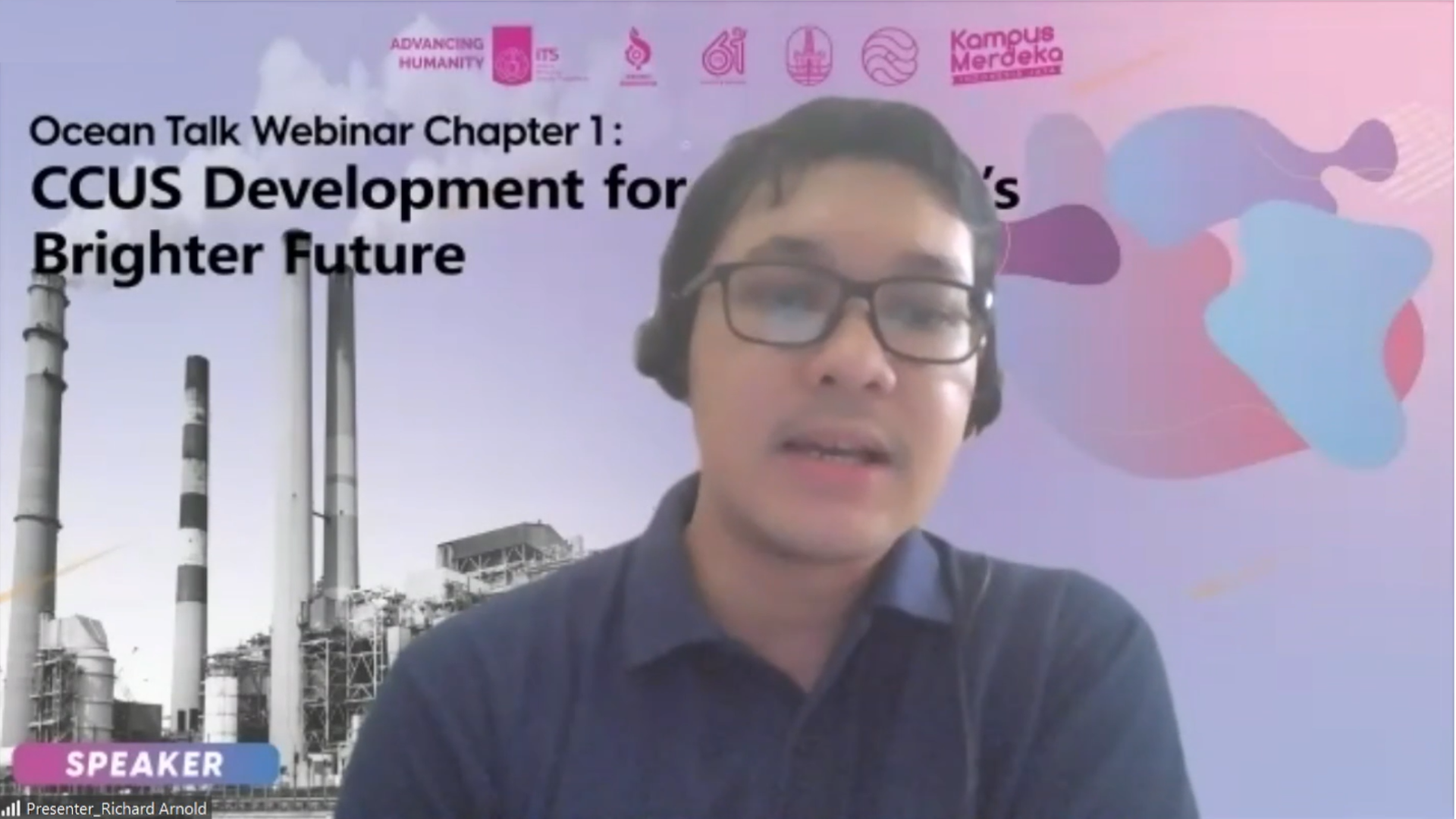 Reservoir Engineer Medco E&P Indonesia Richard Arnold ST MSc ketika mengenalkan Carbon Capture Utilization Storage pada webinar yang diselenggarakan oleh Departemen Teknik Kelautan ITS, 4 Juni lalu