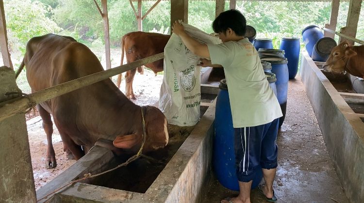 Dengan dukungan dari Direktorat Riset dan Pengabdian kepada Masyarakat (DRPM) ITS, tim KKN bersama peternak membuat pakan konsentrat menggunakan bahan yang tersedia di daerah setempat, seperti jerami padi, tebon jagung, singkong, dan bungkil kedelai. “Penggunaan bahan dari limbah pertanian tersebut menjadikannya lebih murah, mudah, dan ramah lingkungan,” terang Zullaikah.