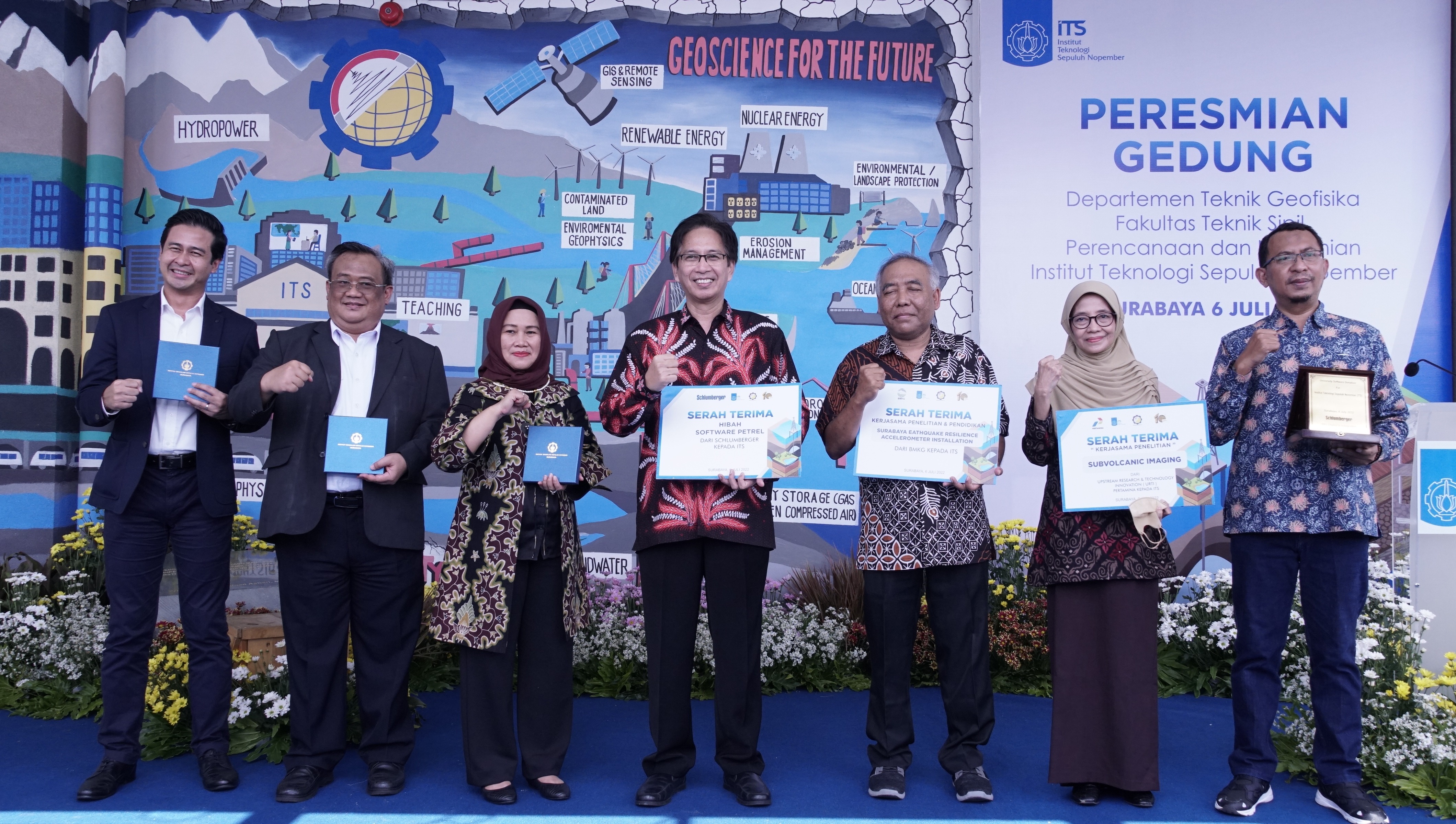 Selain dari BMKG, Teknik Geofisika ITS juga menerima hibah lima liaison perangkat lunak yang bernama Petrel dari Schlumberger. Menurut Dwa, adanya perangkat lunak ini akan menunjang pembelajaran mahasiswa Teknik Geofisika dalam memahami pemodelan subsurface di bawah permukaan tanah.