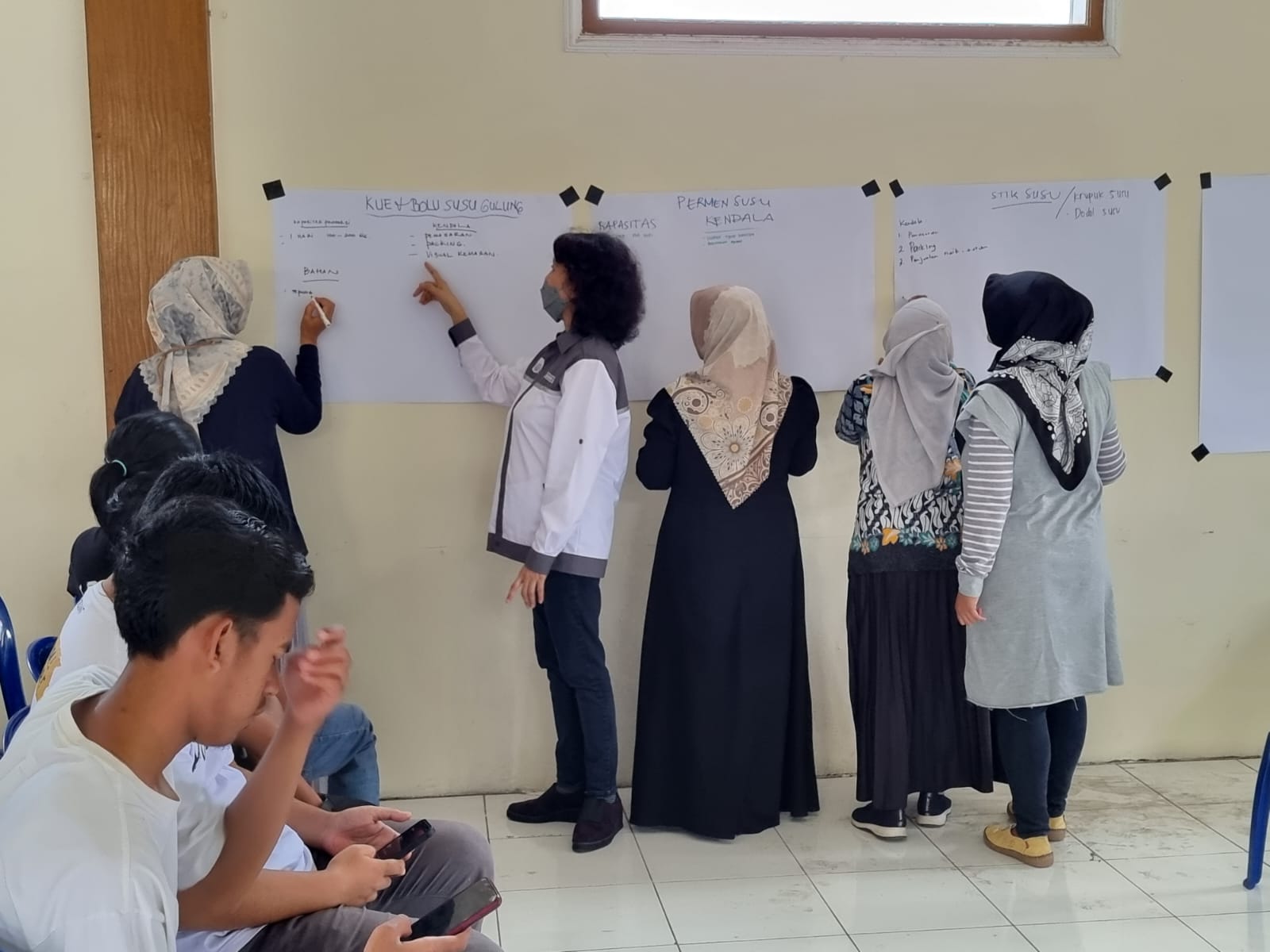 Antusiasme ibu-ibu pelaku UMKM Desa Pesanggrahan saat melakukan diskusi dengan tim Abmas ITS