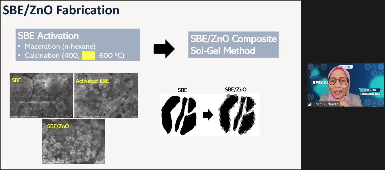 Ervin Nurhayati ST MT PhD yang memaparkan ilustrasi penggabungan SBE dengan Zinc Oksida dalam simposium yang diselenggarakan Dalian University of Technology (DUT) dan ITS