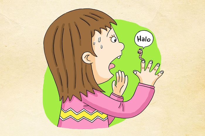 Ilustrasi cacing yang masuk ke tubuh manusia melalui tangan yang terkontaminasi (Sumber: Bobo)