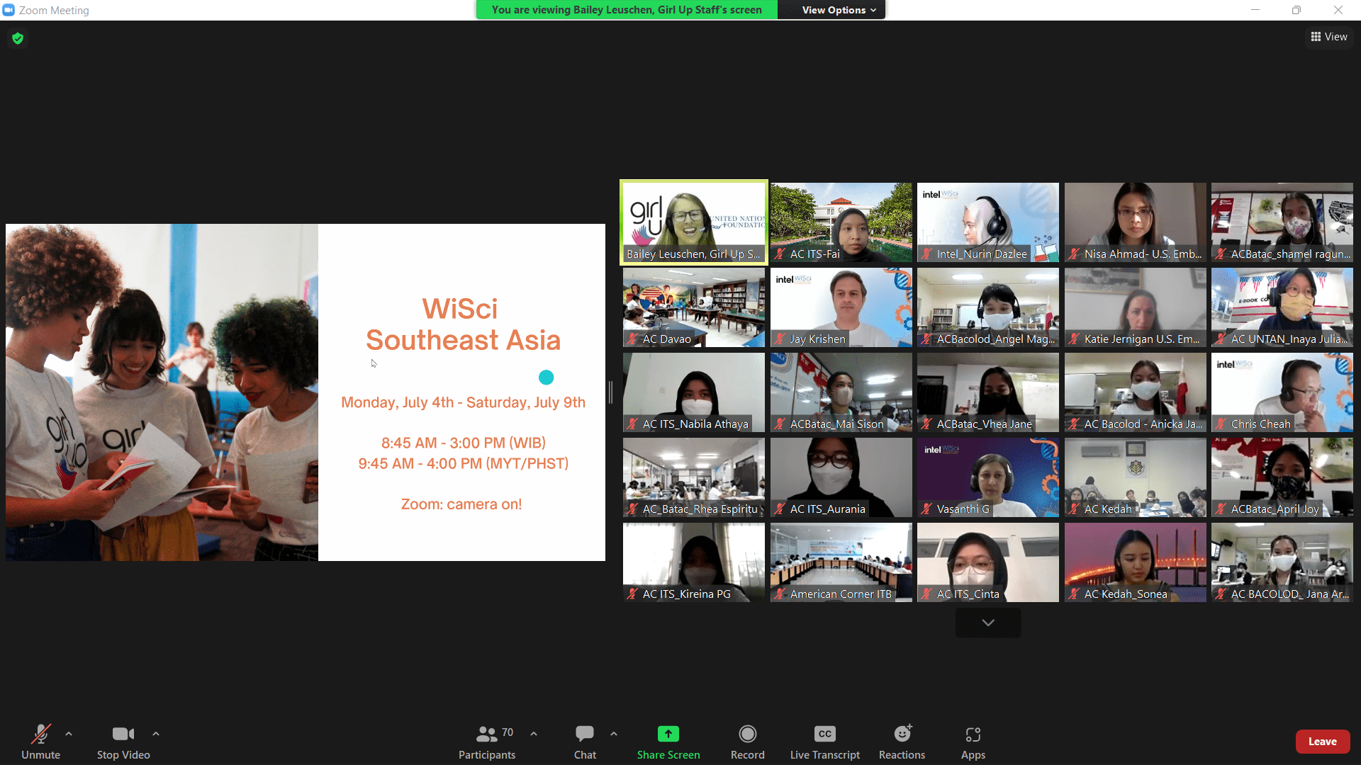 Kegiatan yang melibatkan 70 siswi sebagai peserta dari tiga negara yang berbeda, yaitu Indonesia, Filipina, dan Malaysia ini berlangsung secara hybrid. Yakni daring dari tujuh titik yang disebut American Corner, berbeda. Selain itu, juga dilaksanakan secara luring bagi sepuluh siswi dari Surabaya dengan bertempat di Global Kampoeng ITS International Office. “Kegiatan ini merupakan peluang besar yang dapat membuka kesempatan bagi para perempuan yang ingin menjadi pemimpin di masa depan,” terang Executive Director dari Girl Up Melissa Kilby, dalam sambutan pembuka.