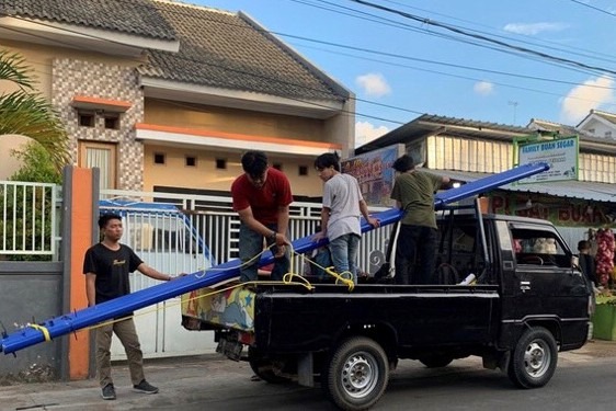 Potret pemasangan Penerangan Jalan Umum Tenaga Surya (PJU TS) berbasis tenaga surya di beberapa titik penting Desa Tanggulangin