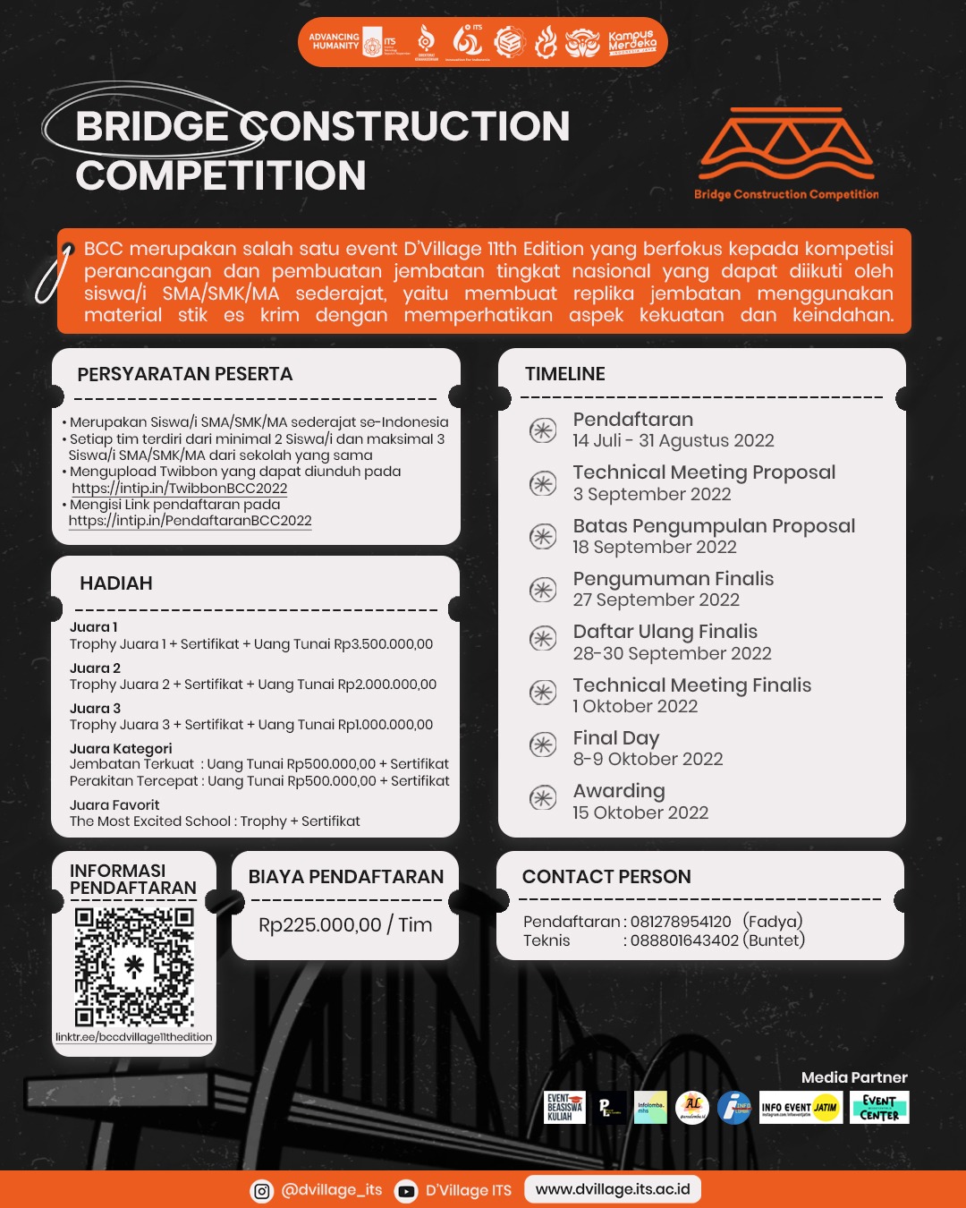Poster lomba Bridge Contruction Competition (BCC), cabang lomba DVillage ITS 2022