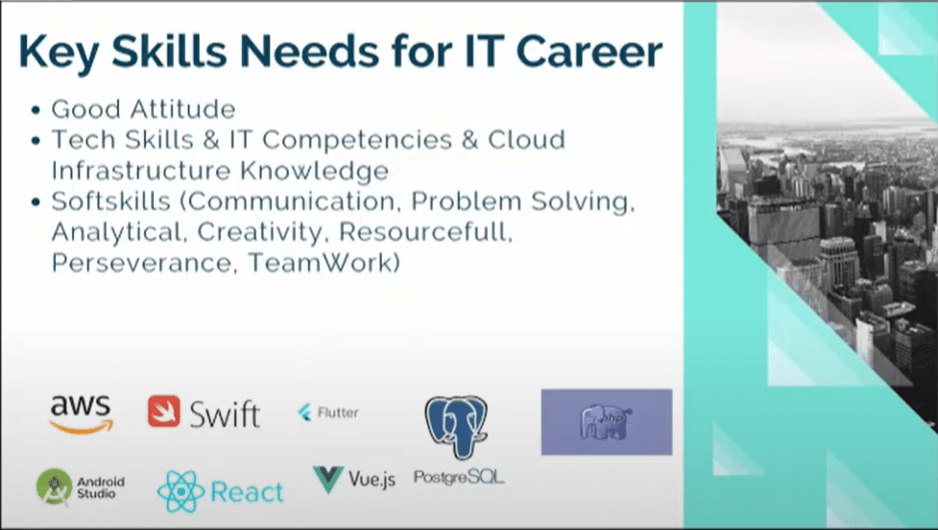 Halim menjelaskan poin terakhir, di mana ketika berkarir di dunia IT dibutuhkan soft skills agar bisa beradaptasi di dunia pekerjaan. Tak hanya kemampuan teknikal saja, melainkan juga dituntut untuk memiliki skill komunikasi yang baik. Diantaranya seperti communication, problem solving, analytical, creativity, resourceful, perseverance, dan teamwork. Dengan soft skill, lulusan di bidang IT akan lebih siap untuk menyelesaikan permasalahan serta menuangkan ide-ide kreatif di perusahaan maupun industri.