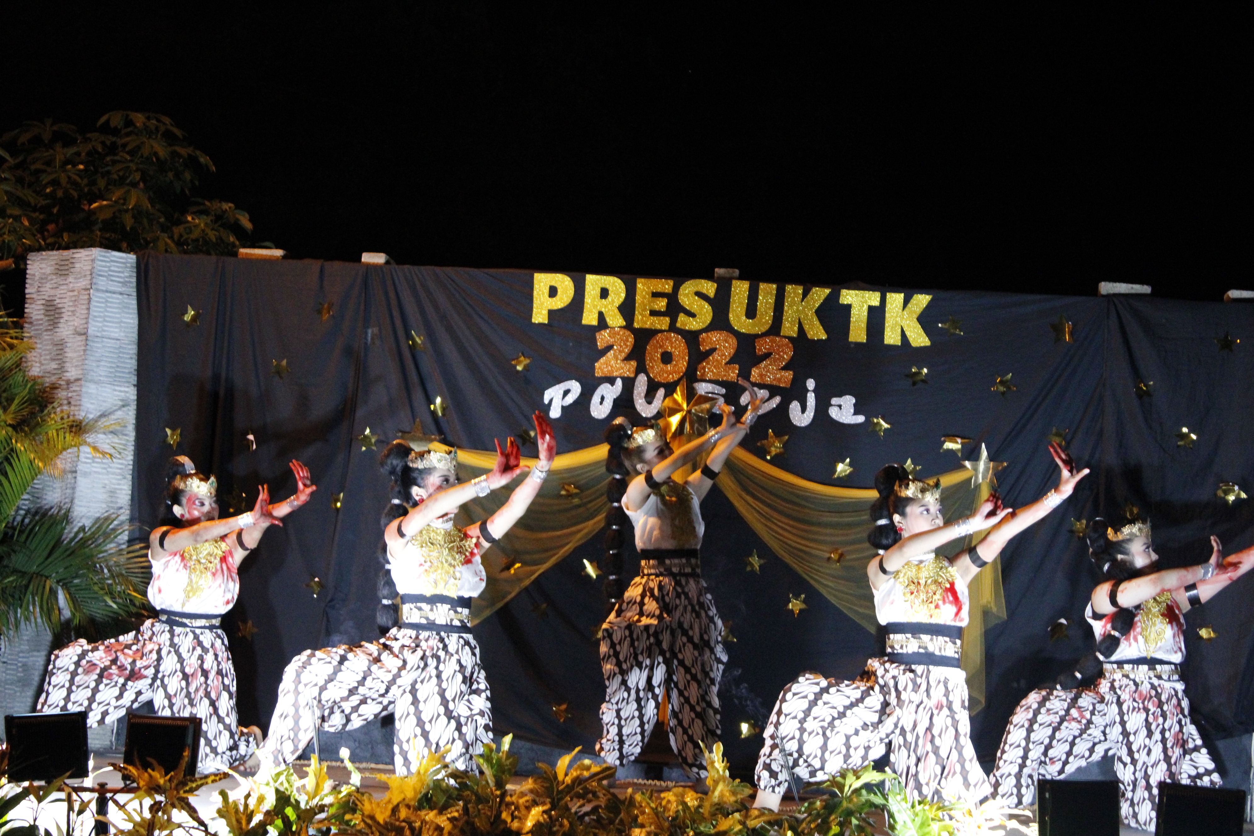 Sekelompok penari Gambyong tengah melenggang dengan kenes dan gemulai di malam perhelatan Apresiasi Seni UKTK 2022