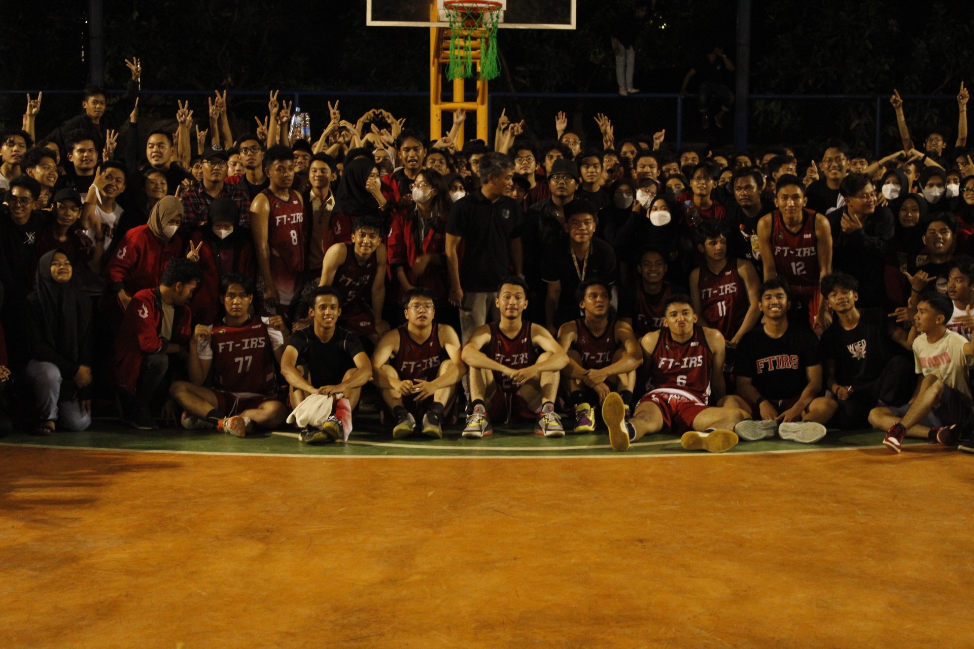 Tim basket putra FTIRS bersama suporter usai raih juara 3 dalam ajang ITS Sportainment Dies Natalis ke-62