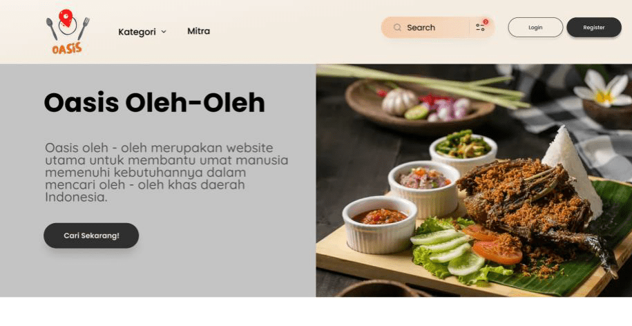 Tampilan beranda website Oasis Oleh-oleh yang dilengkapi dengan product knowledge