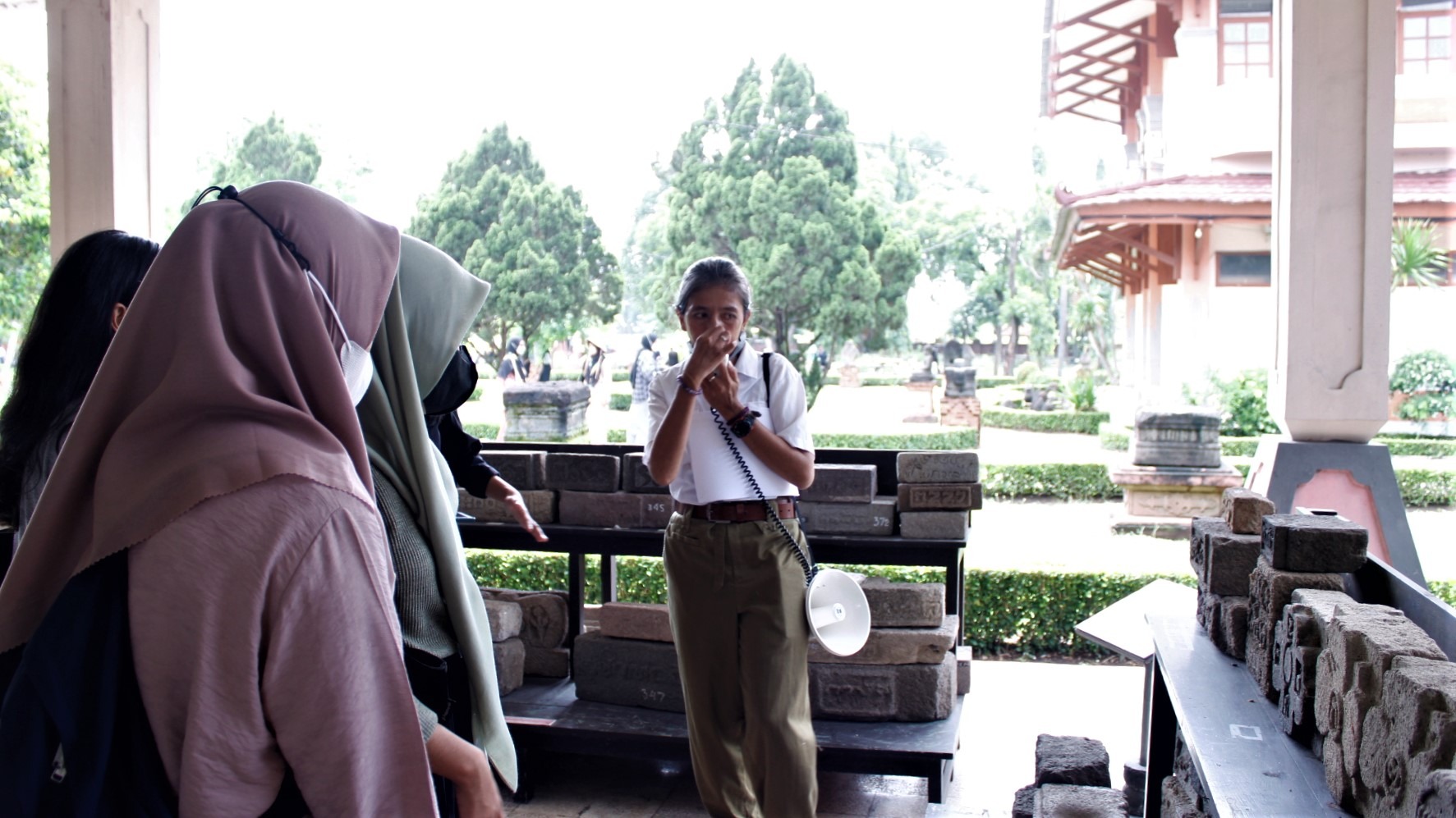 Pengalaman menembus waktu dengan mempelajari bahasa nenek moyang tengah dirasakan oleh mahasiswa yang seluruhnya berasal dari penjuru luar jawa ini. Antusiasme tampak menyeruak di antara mereka ketika pemandu menjelaskan filosofi tulisan di atas prasasti. Tak terkecuali Khairo Adeby, mahasiswa asal Padang ini mengaku dapat mempelajari hal di luar program studi melalui kegiatan ini. “Kita bisa belajar tentang kebhinekaan dan keberagaman,” ungkapnya.