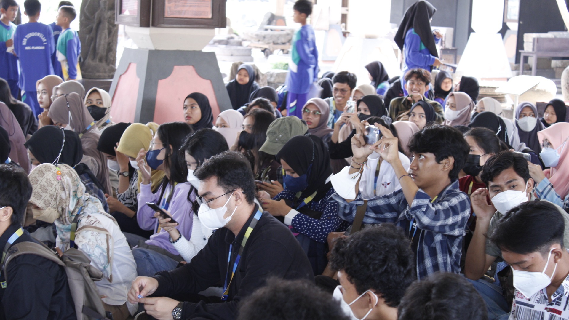 Mahasiswa Program Mahasiswa Merdeka (PMM) menyimak penturuan kisah Panji di Museum Trowulan, Sabtu (15/10)