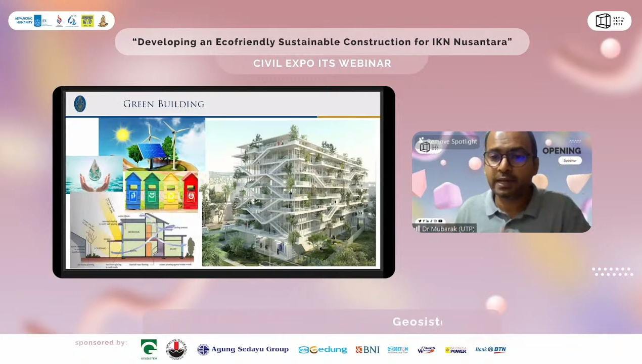 Kampus ITS, ITS News — Rancangan pembangunan konstruksi yang tidak diproyeksikan untuk keberlanjutan ekosistem berpotensi merusak lingkungan secara masif. Menilik isu ini, tiga dosen ahli paparkan konsep konstruksi berkelanjutan yang ideal untuk pembangunan Ibu Kota Negara (IKN) Nusantara dalam Webinar Civil Expo Institut Teknologi Sepuluh Nopember (ITS) 2022, Sabtu (15/10) lalu.