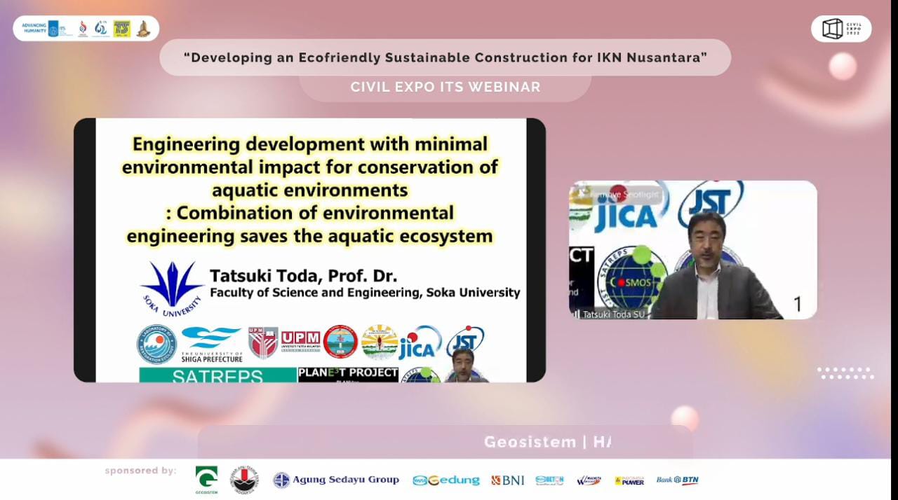 Prof Toda Tatsuki saat memaparkan materi pada sesi awal webinar CIVIL EXPO ITS 2022