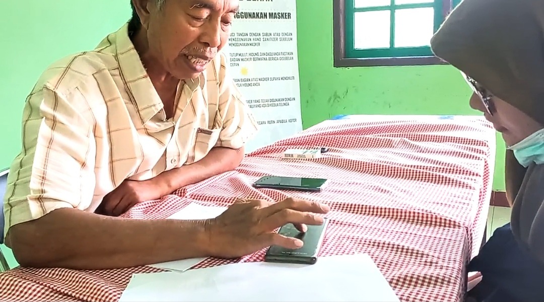 Salah satu mahasiswi ITS (kanan)berdiskusi dengan salah satu Ketua RW (kiri) di Kelurahan Sambikerep