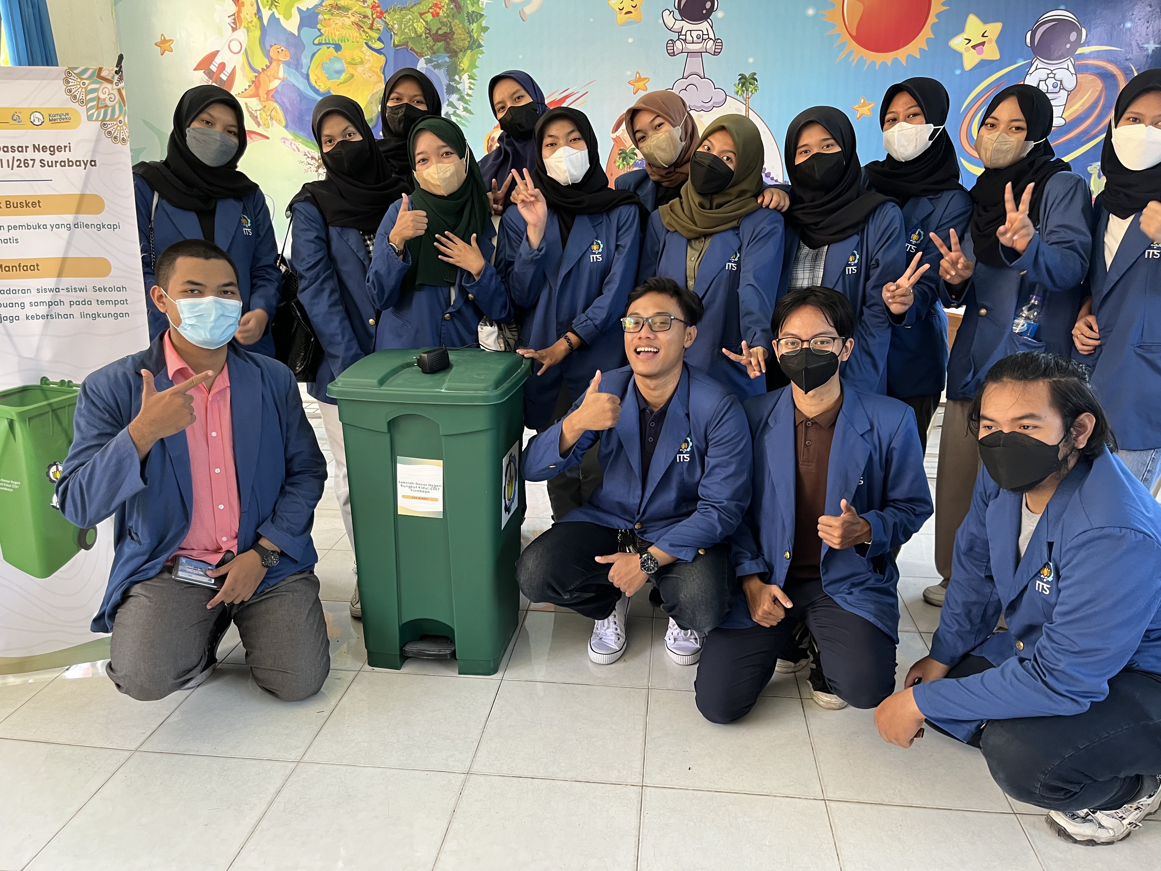 Tim KKN Abmas ITS saat hendak menyerahkan Vox Basket di SDN Rungkut Kidul 1