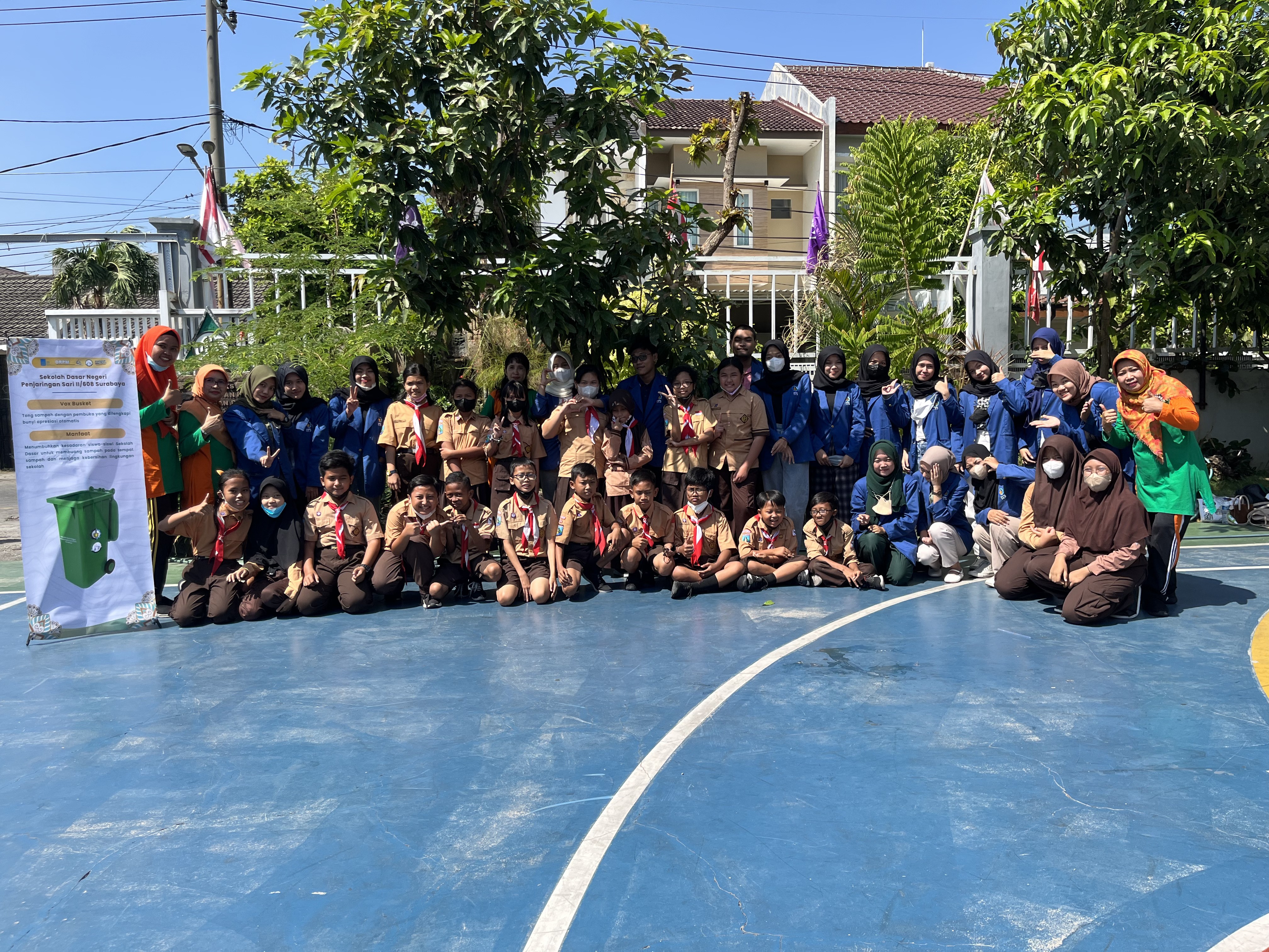 Tim KKN Abmas DTKI ITS saat menyerahkan Vox Basket di SDN Penjaringan Sari II