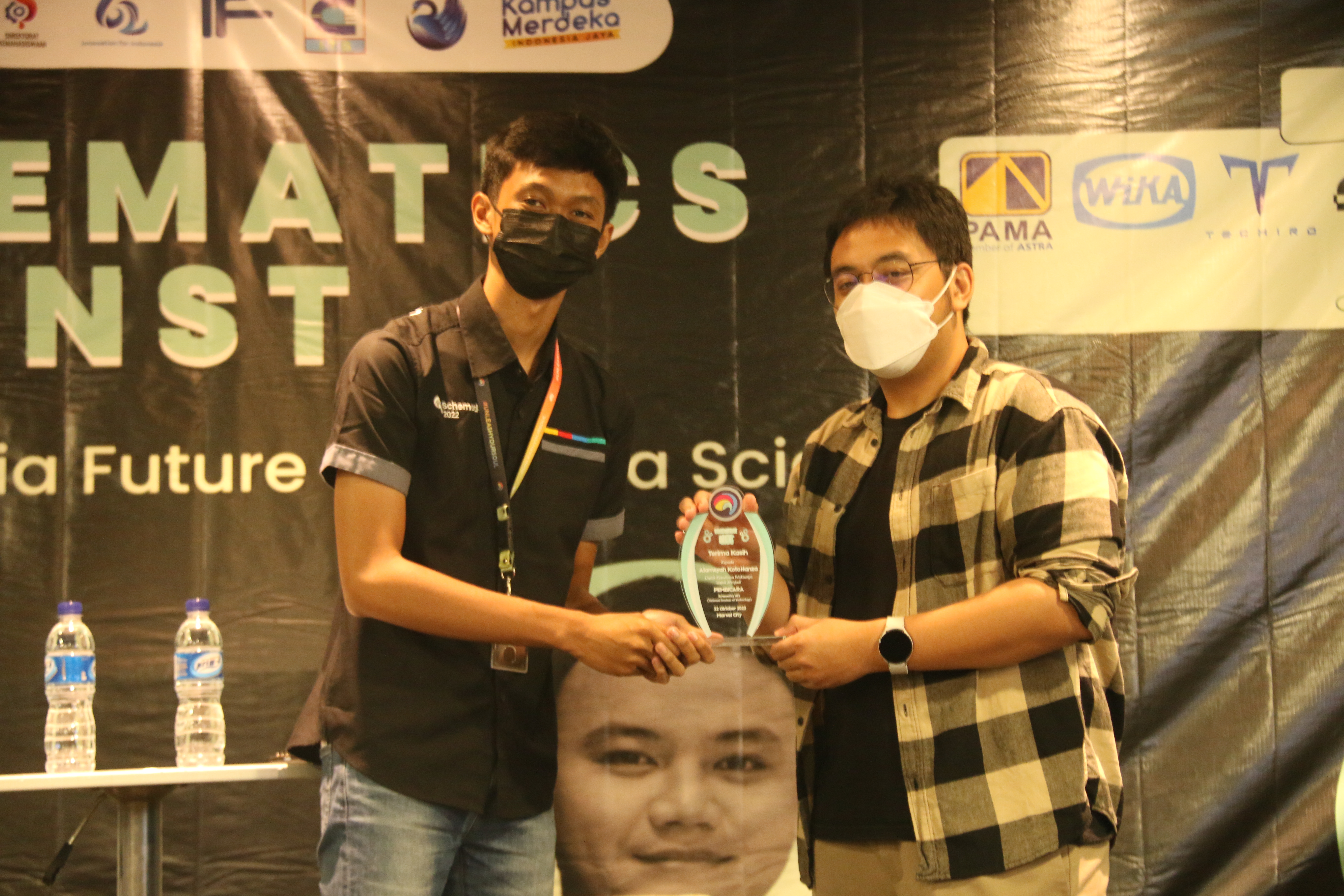 Penyerahan plakat oleh Fadhil Rasyidin (kiri) selaku ketua pelaksana Schematics 2022 kepada Alamsya Hanza (kanan)