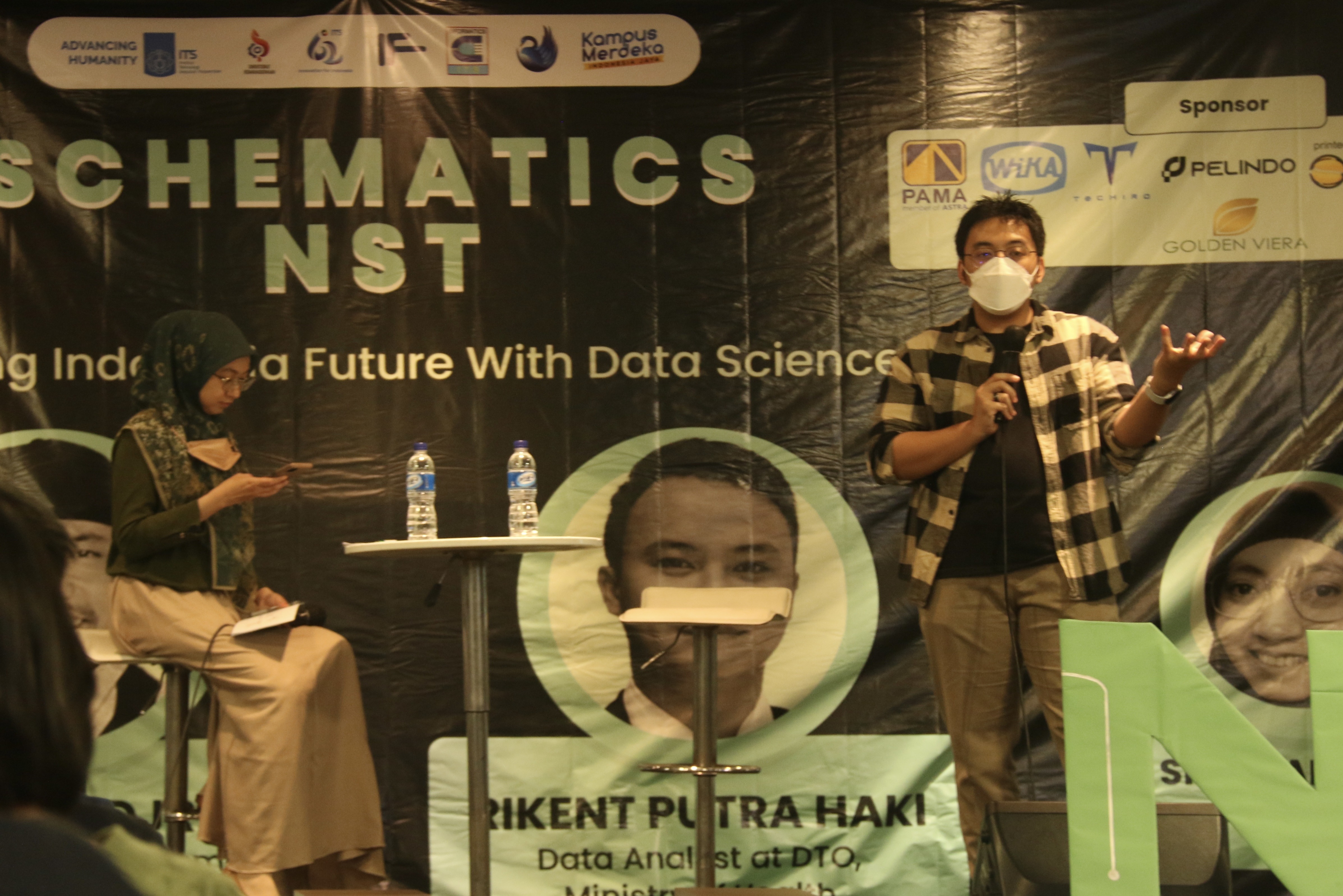 Alamsyah Hanza (kanan) ketika memaparkan materi mengenai data science pada event Schematics NST 2022
