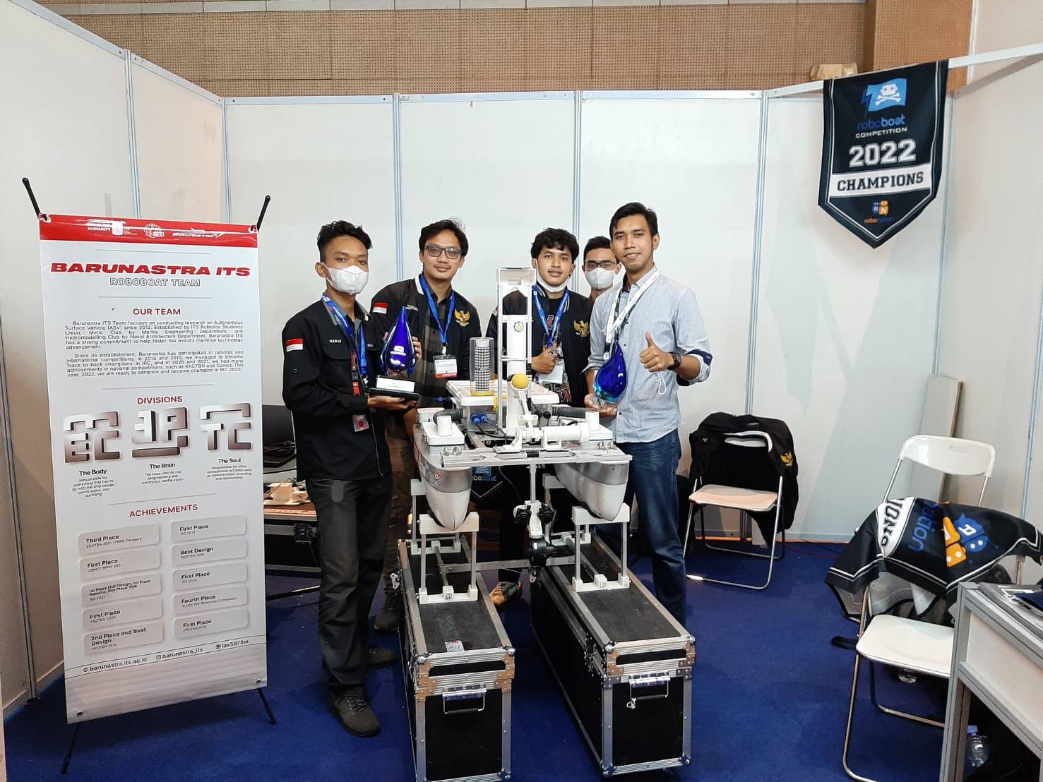 Tim Barunastra ITS bersama produk kapal autonomus rancangannya di Pameran Inamarine 2022
