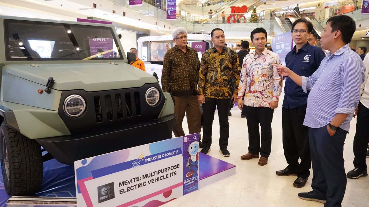 Rektor ITS mendampingi Wakil Gubernur Jawa Timur dan Wali Kota Surabaya mengunjungi salah satu booth inovasi terbaru ITS berupa mobil listrik multifungsi MEvITS