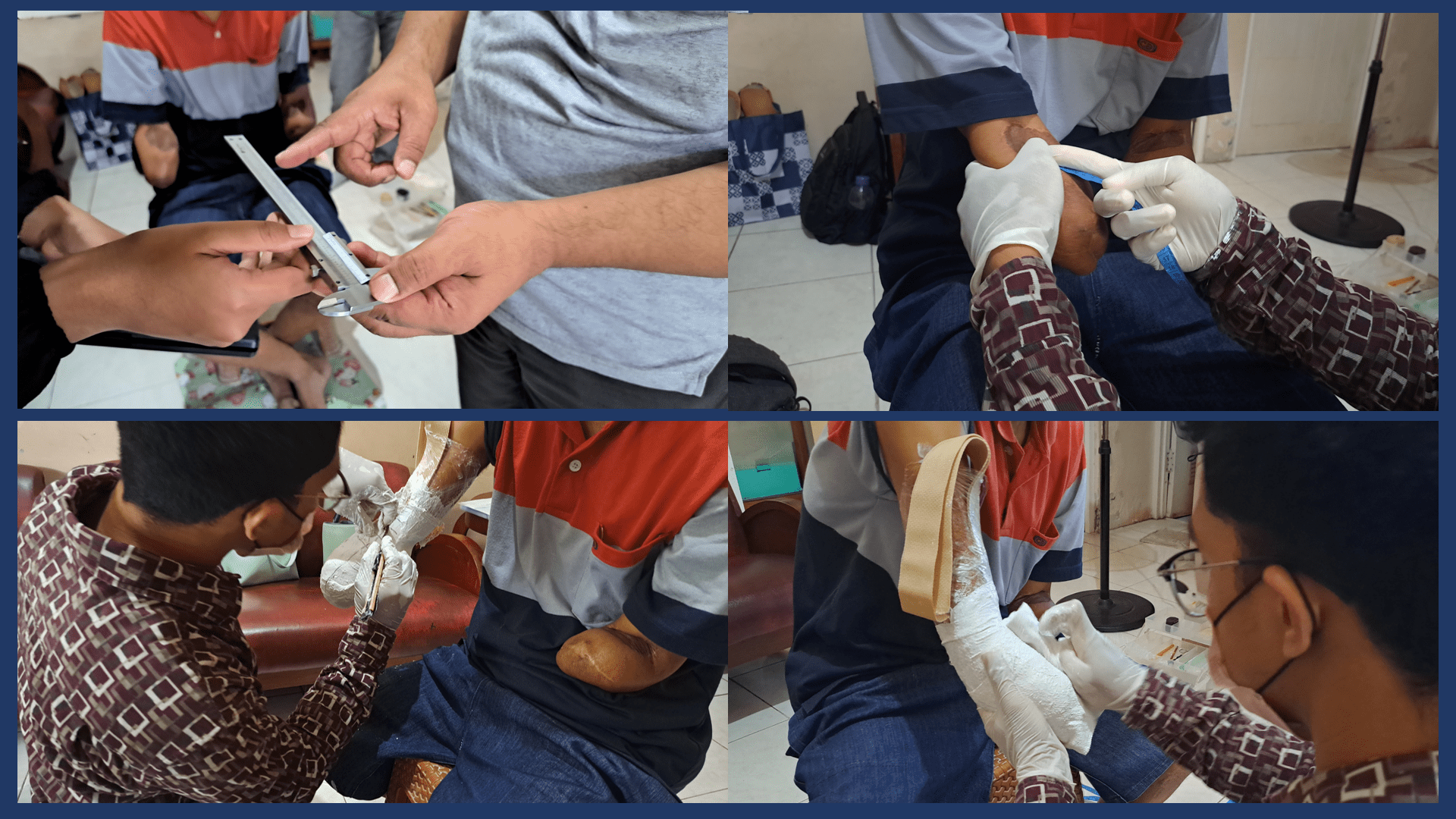 Setelah diperoleh ukuran yang sesuai, maka proses casting pencetakan lengan bawah dapat dilakukan. Proses casting ini dilakukan dengan memanfaatkan material berbasis gipsum, sehingga didapatkan cetakan tangan milik penyandang tuna daksa. Setelah produk tangan tiruan tersebut jadi, maka pemasangan hand prosthesis pada penyandang dapat mulai dilakukan.